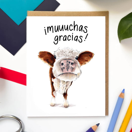Muuuchas Gracias Cow | Spanish Thank You Card