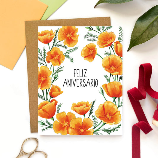 Feliz Aniversario Poppies Spanish Anniversary Card