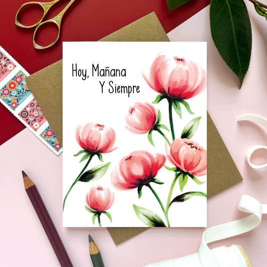 Hoy, Manana, Y Siempre Peonies | Spanish Love Card