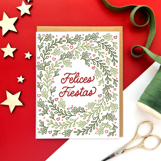 Felices Fiestas Wreath Spanish Christmas Card