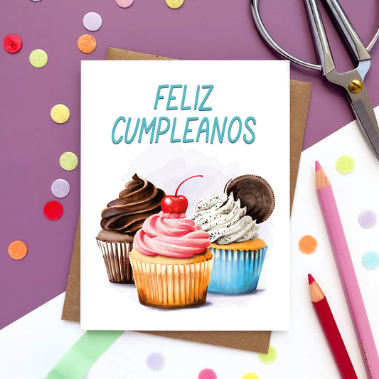 Feliz Cumpleanos Cupcake Spanish Birthday Card