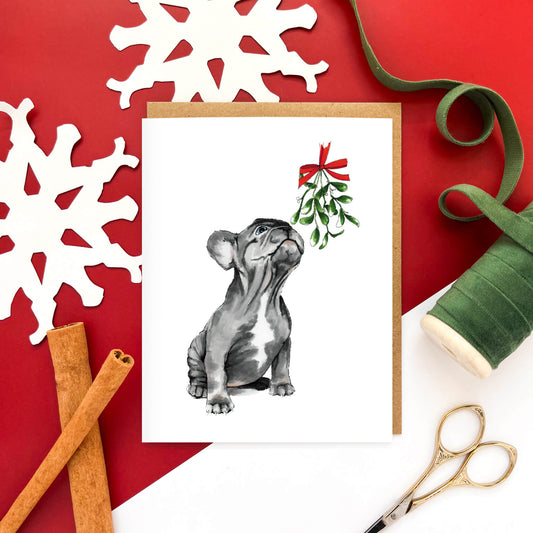Mistletoe Frenchie Dog | Christmas Card - Case of 6
