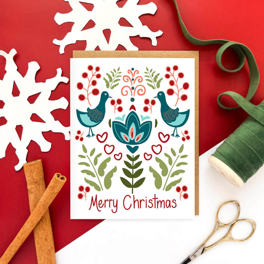 Berries + Birds Folk Christmas Card - Case of 6