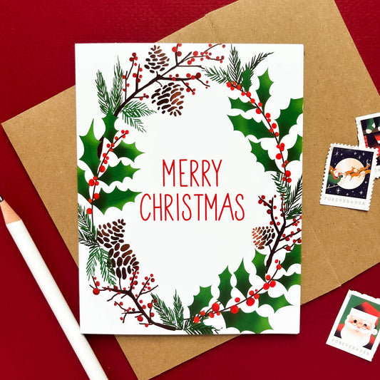 Merry Christmas Greenery | Christmas Card - Case of 6