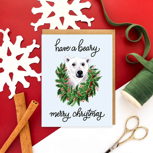 Beary Merry Bear | Punny Animal Christmas Card - Case of 6