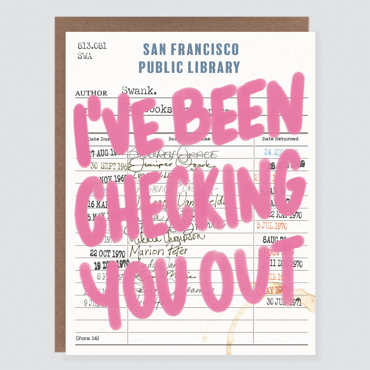 For the book lover who stole your heart—this card says it all! Featuring a vintage library checkout card design with “I’ve Been Checking You Out” boldly written in pink. This greeting card is a book lover's dream!
